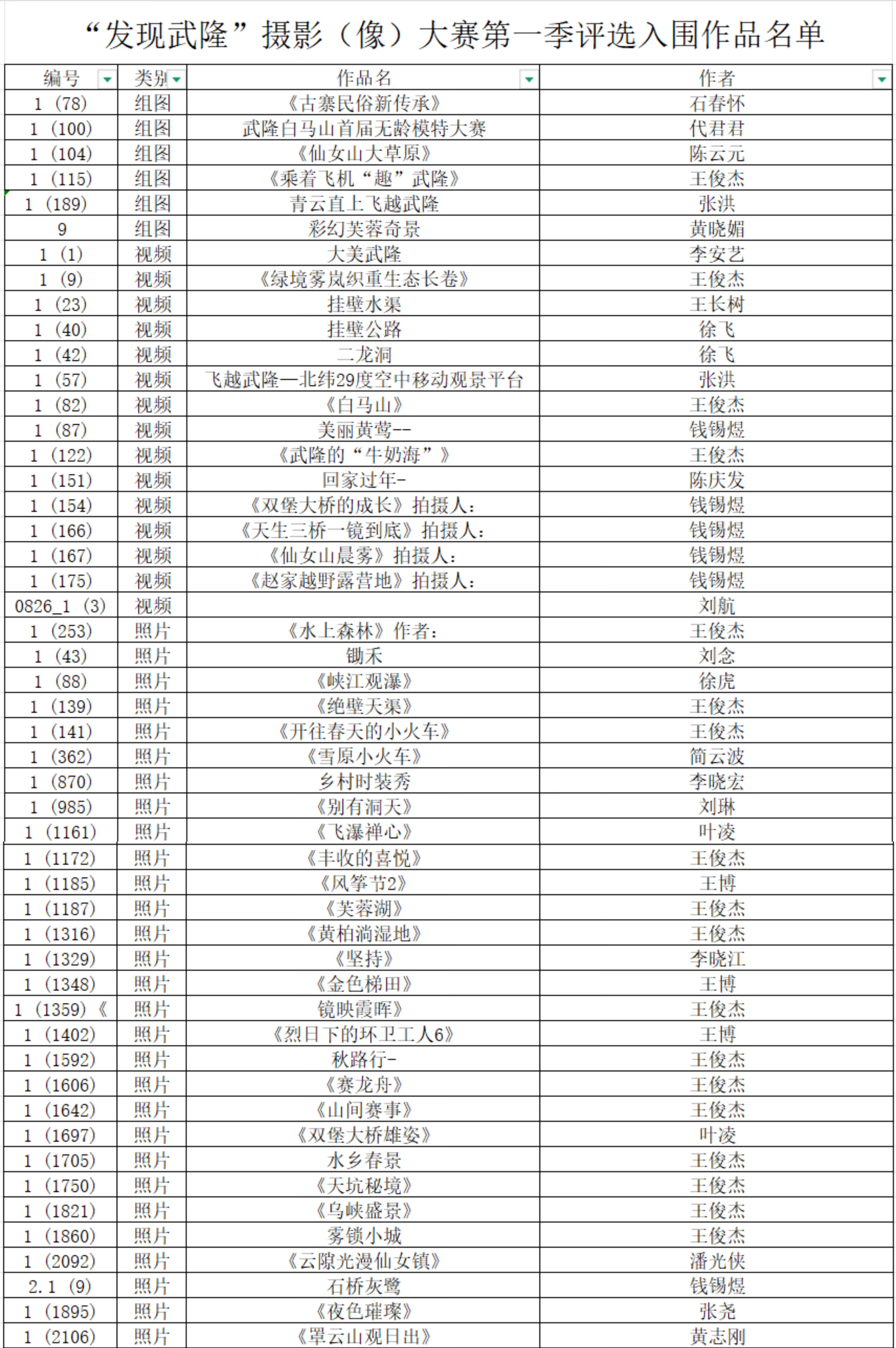 附件:“發(fā)現(xiàn)武隆”攝影(像)大賽第一季評(píng)選入圍作品名單