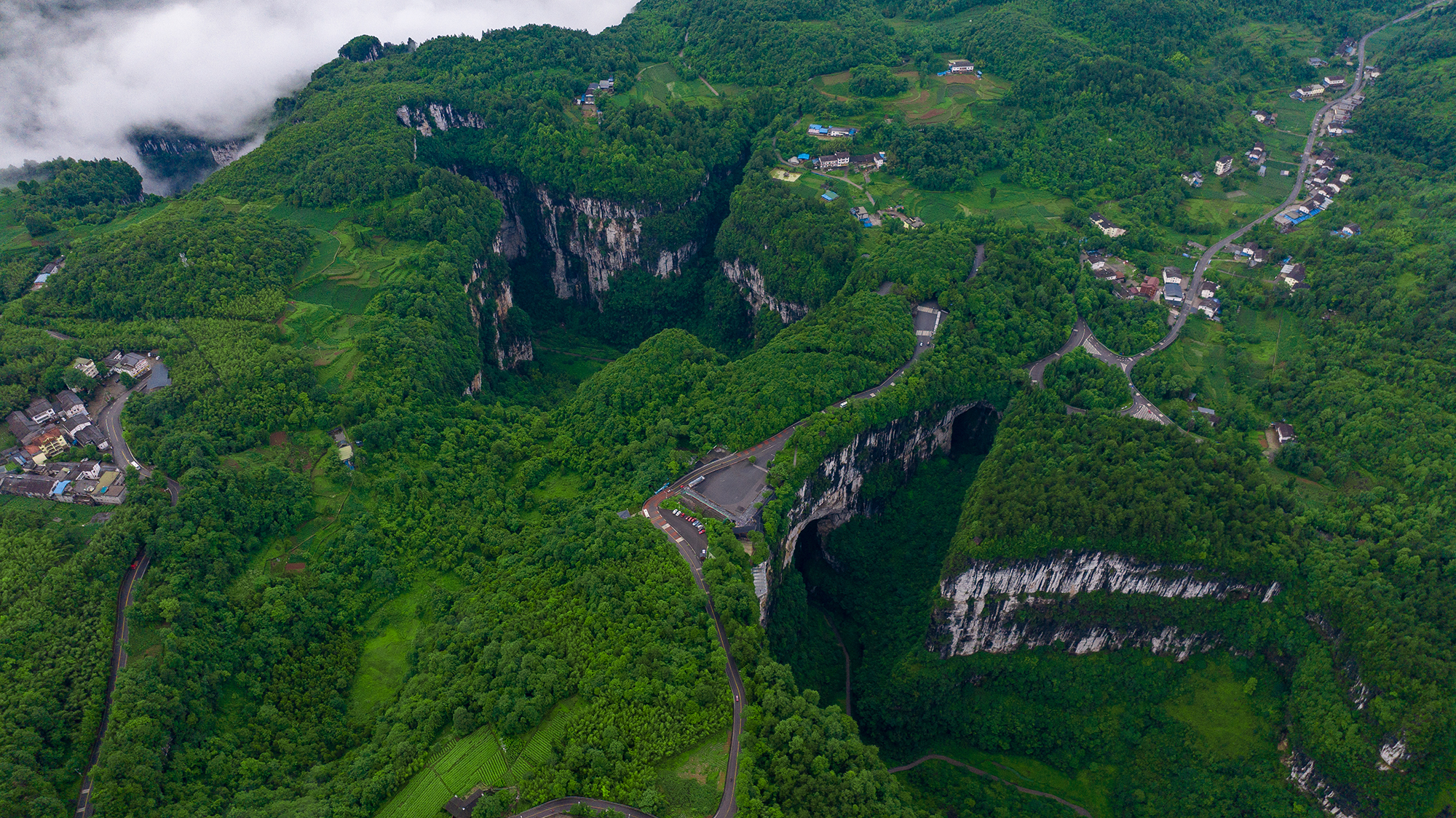 作為世界自然遺產核心,這里擁有世界規模最大的喀斯特天生橋群。行走于天龍橋、青龍橋、黑龍橋之間,猶如穿梭于地球的史詩裂縫。抬頭是百米穹頂勾勒出的“天眼”,低頭是清泉石上流、綠意深谷幽。這里也是《滿城盡帶黃金甲》《變形金剛4》的取景地——你不只是游客,也是電影畫面的主角。