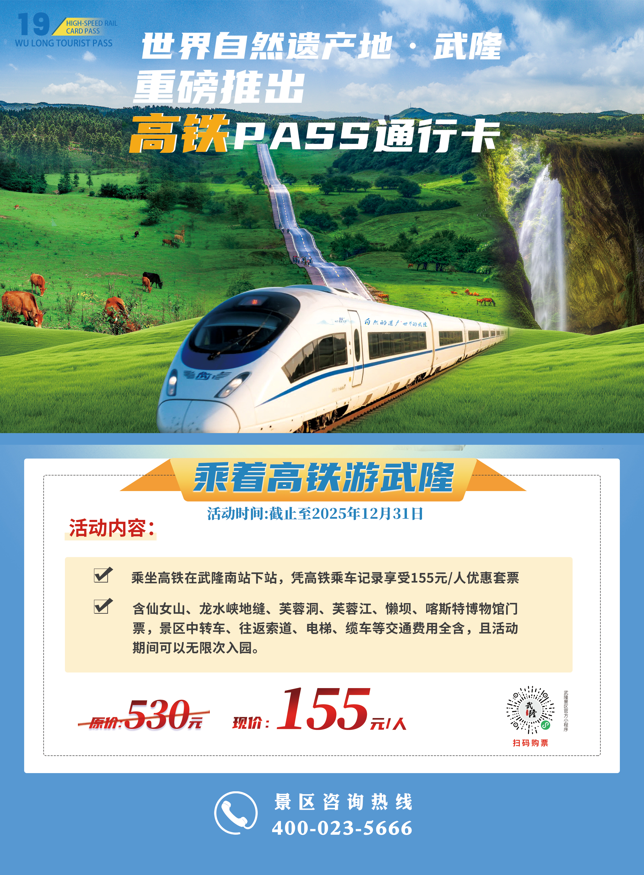使用條件:乘坐高鐵在武隆南站下車,憑高鐵乘車記錄購買。