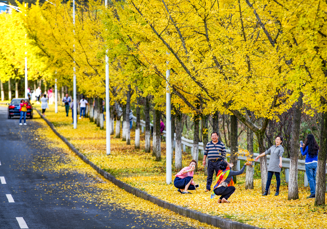 上午漫步銀杏大道,在光影交錯間捕捉鎏金瞬間;