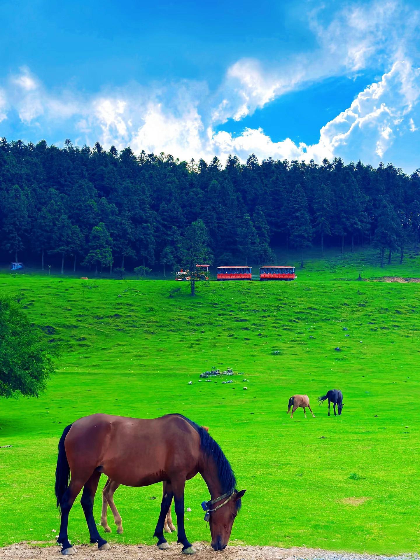 午后探訪仙女山草原,沿著波浪公路前行,看紅杉林暈染緋紅,與悠閑的牛羊共享暖陽;