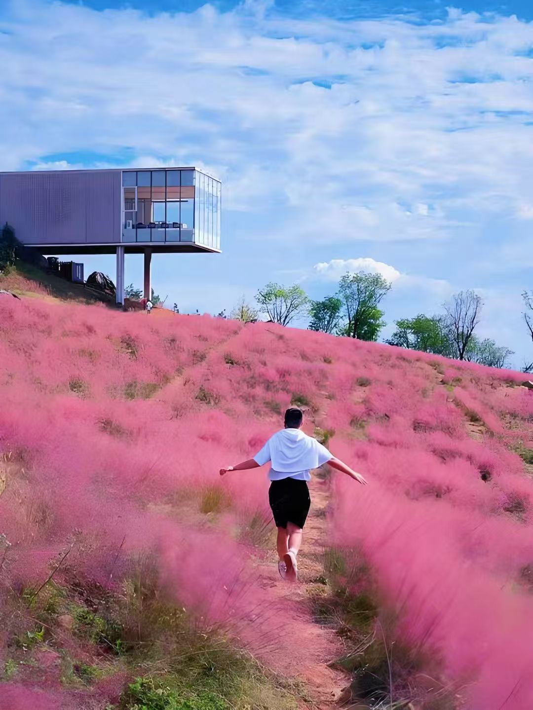 這片粉色海洋,隨著季節(jié)變換色彩——初秋粉嫩,深秋漸濃,在陽光下呈現(xiàn)出夢幻般的色彩層次。微風(fēng)拂過,整片花海如波浪般起伏,游客穿行其間,仿佛置身童話世界。