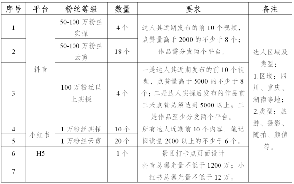 為借助網(wǎng)絡達人的影響力,對2025年仙女山冰雪季進行全方位、多渠道的宣傳引流,從而提升景區(qū)的知名度和吸引力。武隆景區(qū)擬開展網(wǎng)絡達人采購工作,并采用公開比選方式選擇和確定中選人,特邀請符合本次采購要求的供應商參加該項目的比選,現(xiàn)將有關事宜公告如下: