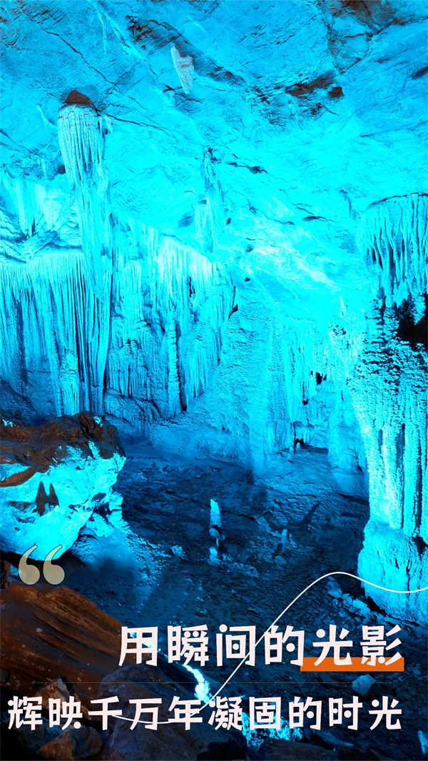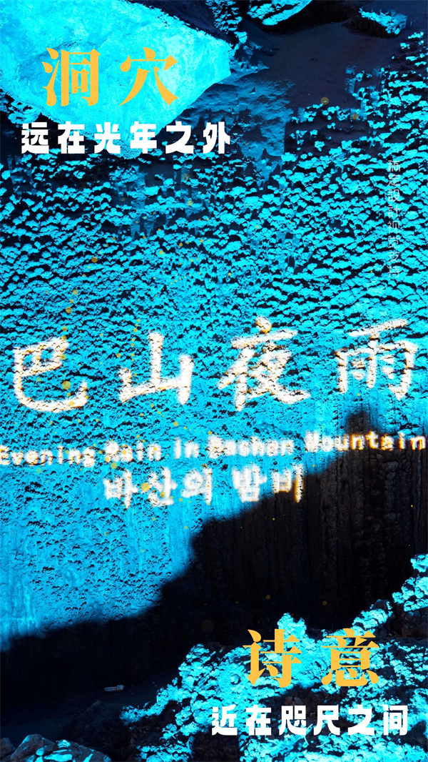 燈光為筆,洞壁為卷。 科技在這里不再是冰冷的工具,而是成為了連接古今的橋梁。它用光與影作墨,將詩人那一刻內心的纏綿與自然界的瀟瀟秋雨,淋漓盡致地潑灑在這幅億萬年形成的天然畫卷上。