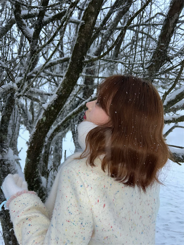 捧起一把細雪輕輕吹散,或在雪地中回頭微笑。建議使用連拍模式,捕捉最自然的瞬間。淺色系的毛衣與圍巾會讓你在雪景中更加出眾。
