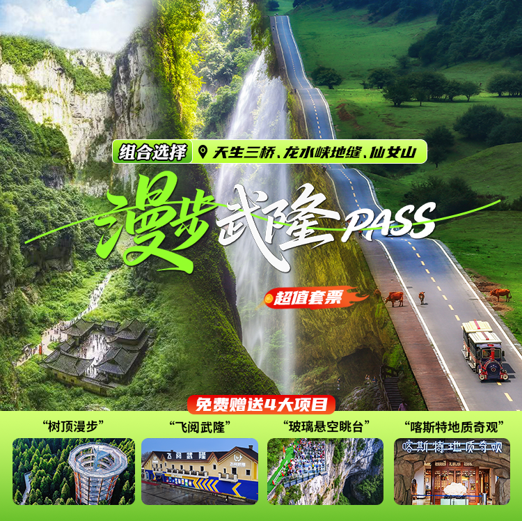 權益:暢游升級!「漫步武隆Pass」重磅上線——任選兩大景區組合聯票,一次打卡武隆精華,深度體驗喀斯特奇觀!