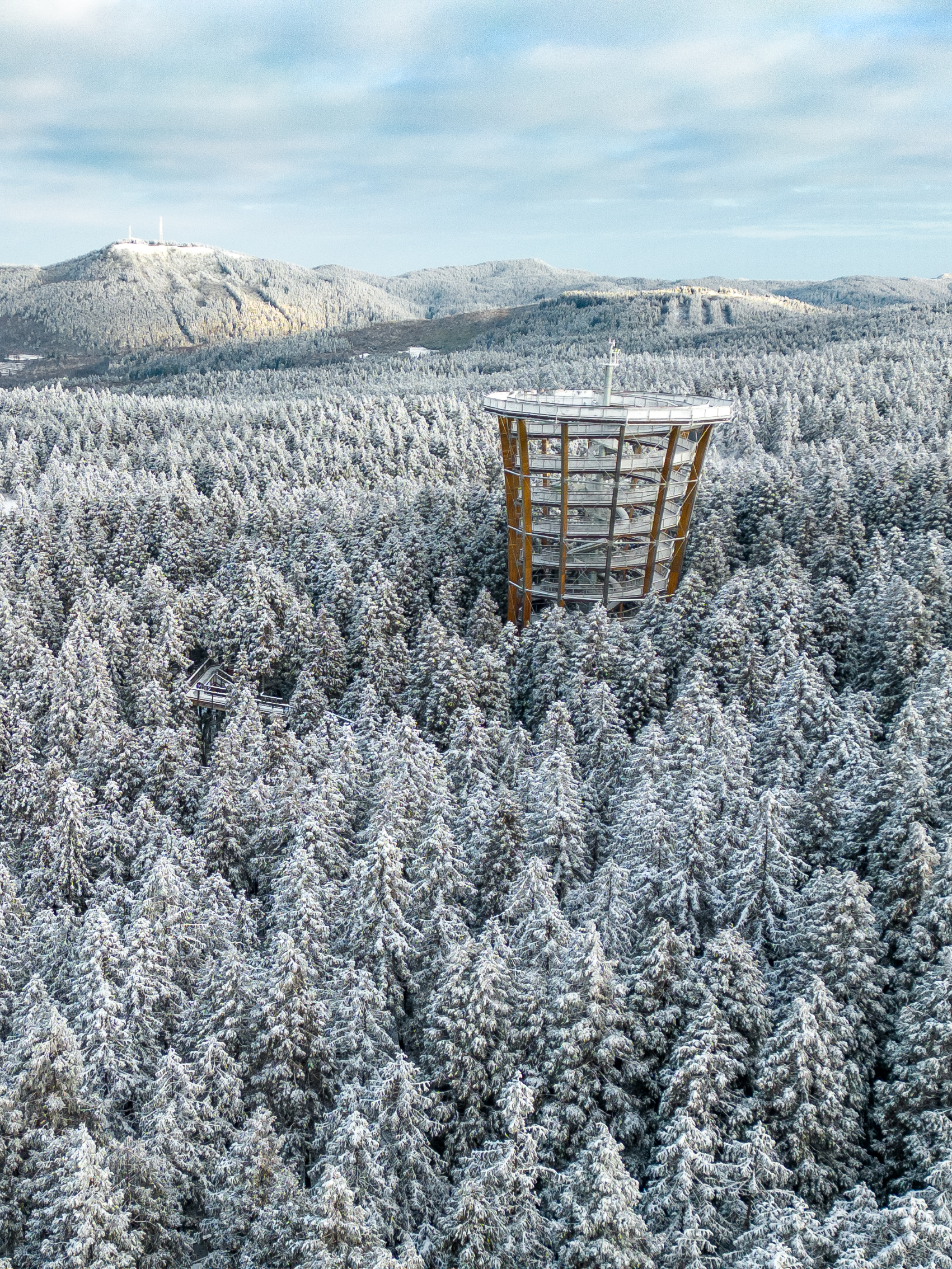 漫步樹頂步道,穿行霧凇森林