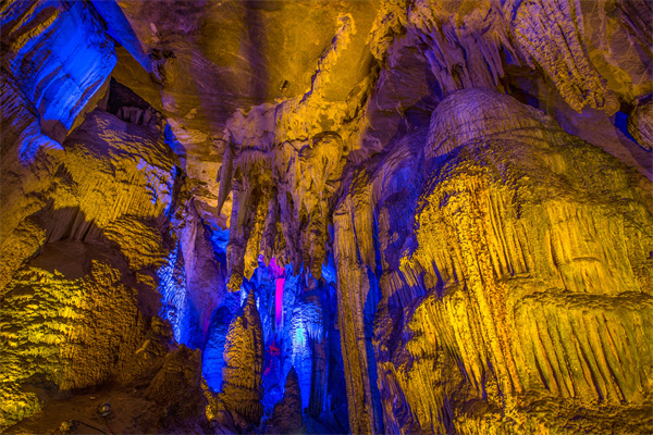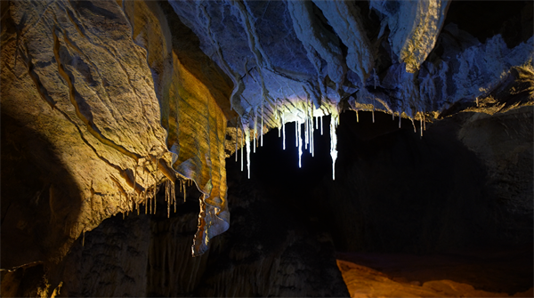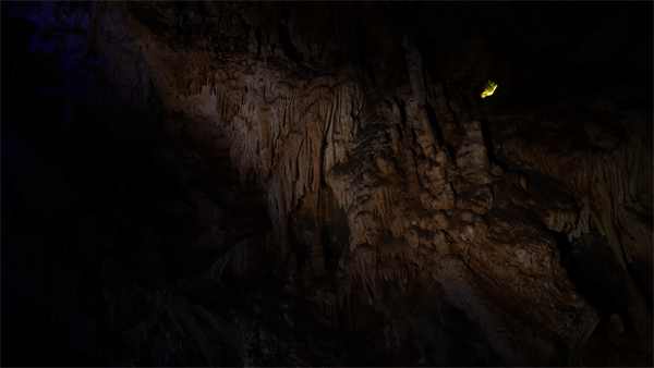 看那被暖黃燈光點亮的奇妙景觀:從洞頂向下生長的是石鐘乳,自地面向上攀升的是石筍。當它們遙相對望,仿佛天地間一場靜默的對話,稱之為“千年之吻”。