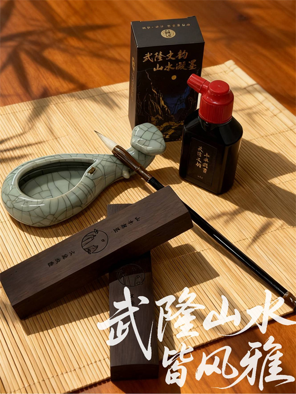 一套武隆風光撲克牌,54張牌面映著天坑地縫的雄奇、仙女山的秀美。與友人對弈時,山水就在指尖流轉。或者,選一套融入了武隆山水靈韻的筆墨紙硯——硯臺似烏江石般溫潤,紙張仿若山間云霧。