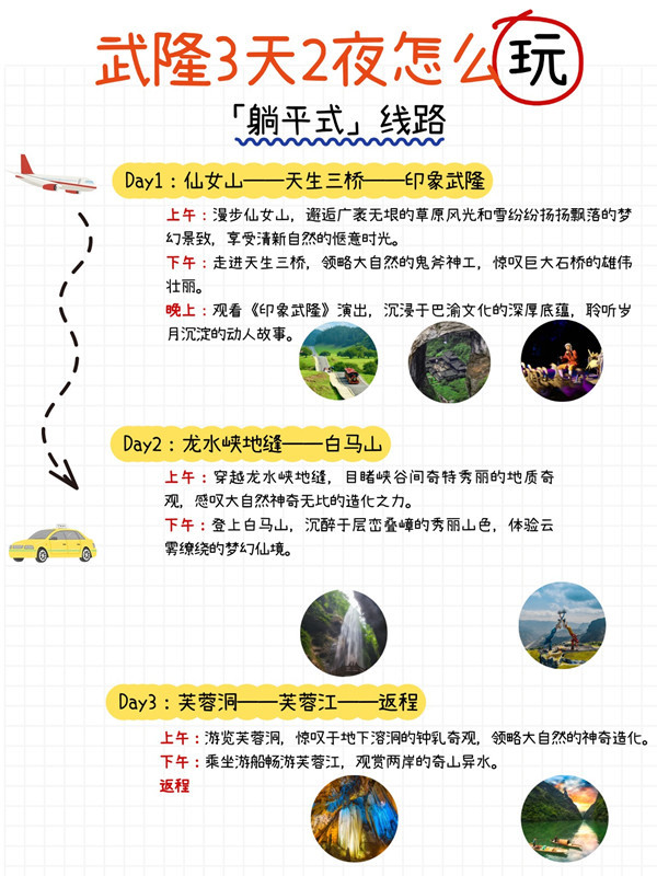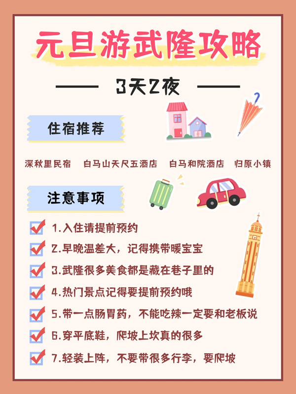 元旦將至,還在糾結(jié)去哪里跨年嗎?別再盲目瞎跑啦!來武隆開啟一場輕松愜意的3天2夜「躺平式」之旅吧,吃、住、行…全為你安排得明明白白,趕緊收藏起來!