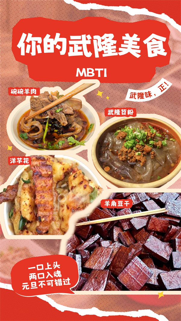 這個(gè)元旦,如果你來到武隆——看罷天生三橋的雄奇,賞盡仙女山的草甸,別忘了,還有一程留給味蕾的“MBTI探秘之旅”。在這里,每一道地方美食仿佛都對(duì)應(yīng)一種人生態(tài)度。你,是哪一味?