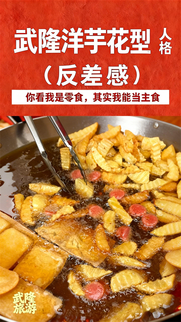 平凡的土豆,被切成花,炸得酥脆,再撒上各色調(diào)料,瞬間變身街頭明星。還可以和豆干、苕皮、火腿等組合,永遠(yuǎn)充滿驚喜。