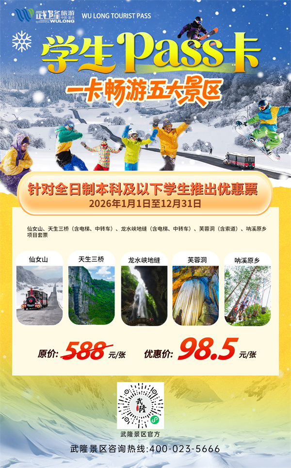 新年伊始的武隆,人氣與雪花齊飛,服務共美景一色。武隆景區已準備好,以更美的風景、更暖的服務,與您相約在2026年的每一個精彩時分。