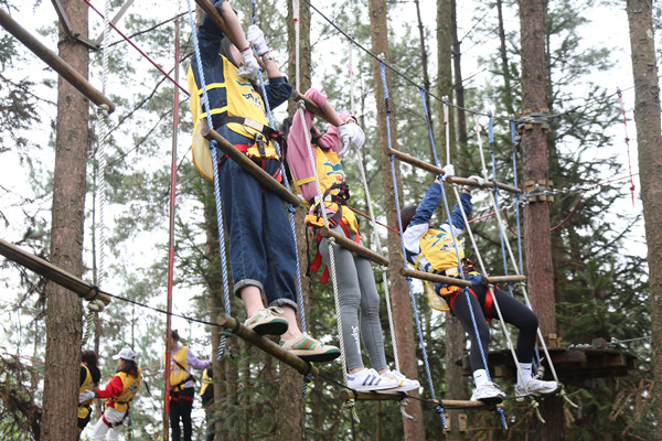 景區(qū)以“叢林探險(xiǎn)”為主題元素,共打造了飛越叢林、大魔網(wǎng)、音樂鋼琴噴泉、飛拉達(dá)、高空速滑、步步驚心、鐵索橋、玻璃迷宮、瘋狂自行車、大喇叭、攀巖、七星陣、風(fēng)火輪、游樂船、童年記憶、玻璃旱滑等16個(gè)極限挑戰(zhàn)項(xiàng)目,每個(gè)項(xiàng)目都能為游客帶來精神上的驚險(xiǎn)刺激和充滿青春熱血的旅行體驗(yàn)。