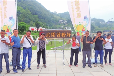 除了好看好玩的,當然還少不了好吃的。在活動現場,還舉行了金秋農產品品鑒展銷活動。來自全區20余家本土農產品企業參展,花生、板栗、苕粉、蜂蜜、獼猴桃、八月瓜……100余種農產品齊聚一堂,應有盡有。同時,活動還邀請諸多網紅進行了現場直播,積極推薦武隆優質農特產品,為鄉村產業振興助力。